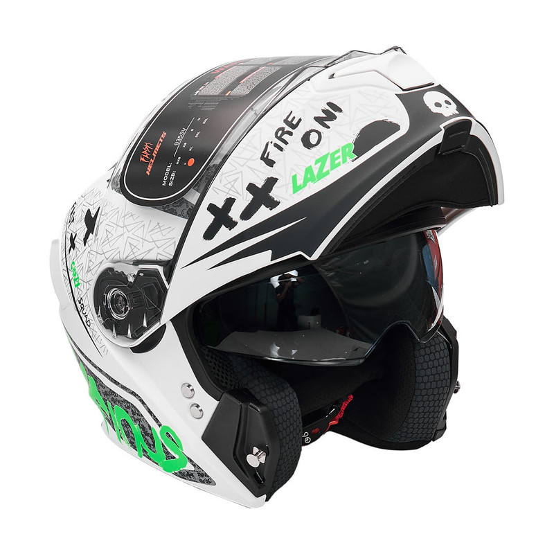 ویژگیهای کلاه کاسکت: قابلیت اتصال به بلوتوث , نشکن , دارای کاور کلاه , عینک , دارای پد قابل شستشو و تعویض , قابلیت تنظیم اندازه به صورت , طلق متحرک , دریچه ورود هوا