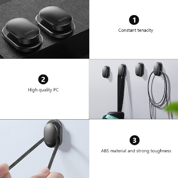 محافظت از وسایل در برابر افتادن، گم شدن و خط و خش - دارای چسب قوی و مقاوم در برابر آویزان کردن اجسام - قرار گیری روی سطوح صاف - مجهز به پک ۴ تایی گیره