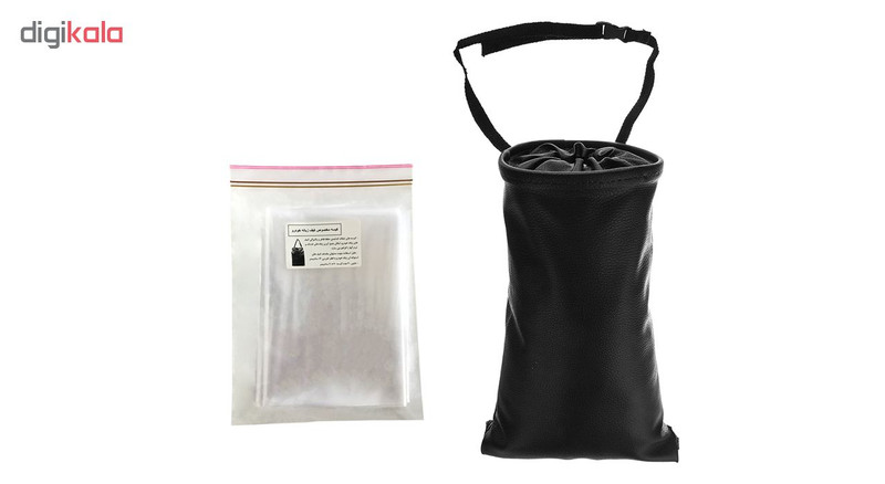 دارای چسب پارچهای ولکرو در قسمت انتهایی جهت تخلیه کیسه دارای بند قابل تنظیم جهت آویزان کردن بهمراه بسته 30 عددی نایلون شفاف یکبار مصرف قابل استفاده در تمامی خودورها