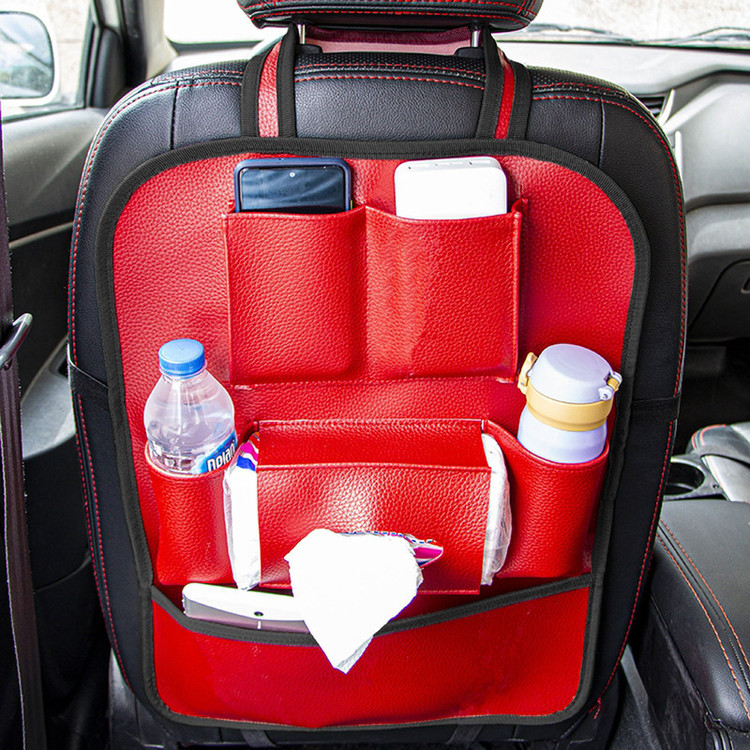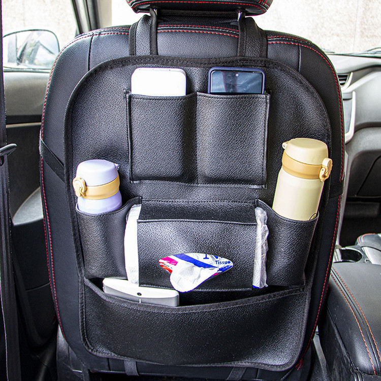 جنس چرم دارای6محفظه شامل : دو جای بطری و لیوان یک جیب مناسب برای دستمال کاغذی دو جیب در بالا جهت قراردادن موبایل و اشیای کوچک یک جیب بزرگ در پایین جهت قراردادن تبلت، کتاب ، مجله و ... نصب آسان و راحت دارای 2 بند کشی جهت نصب پشت صندلی خودرو