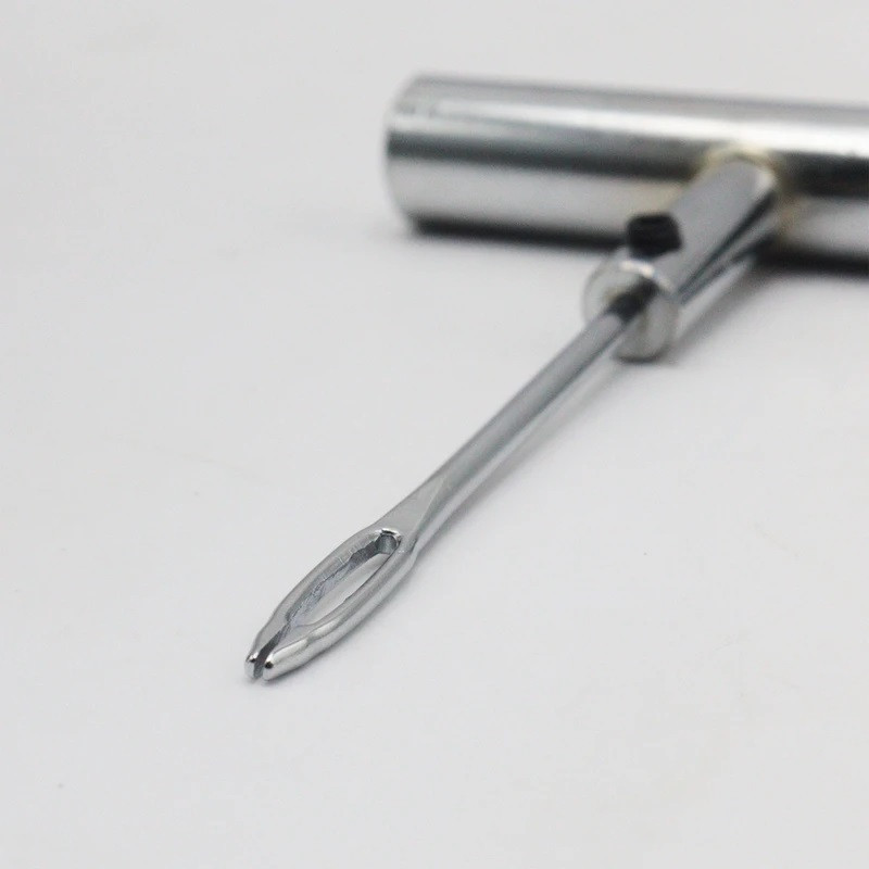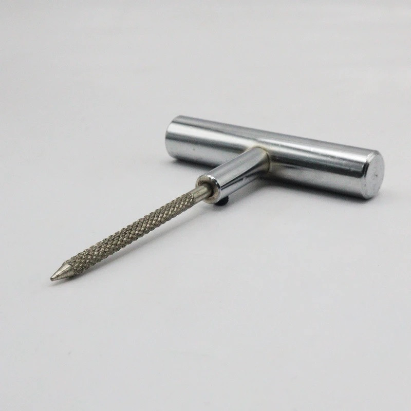 وصله ی پنچری را درون نخ زن قرار داره و تا قسمت انتهایی درون محل پنچری کرده و با سرعت به سمت خارج می کشیم با این کار وصله ی پنچری درون لاستیک گیر می کند و با خاصیت چسپندگی خود مانع از خروج باد لاستیک می شود .