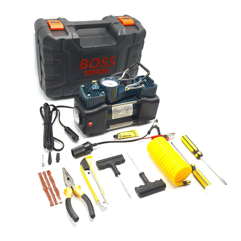 دارای متعلقات کاربردی؛ شلنگ فنری دمباریک، کاتر، انبرک های پنچر گیری، پیچ گوشتی دوسو و چهارسو، وصله پنچرگیری ، چسب پنچرگیری ، تبدیل فندکی به سر باتری خودرو، سه عدد سری (جهت باد زدن توپ، دوچرخه، قایق بادی و ...)