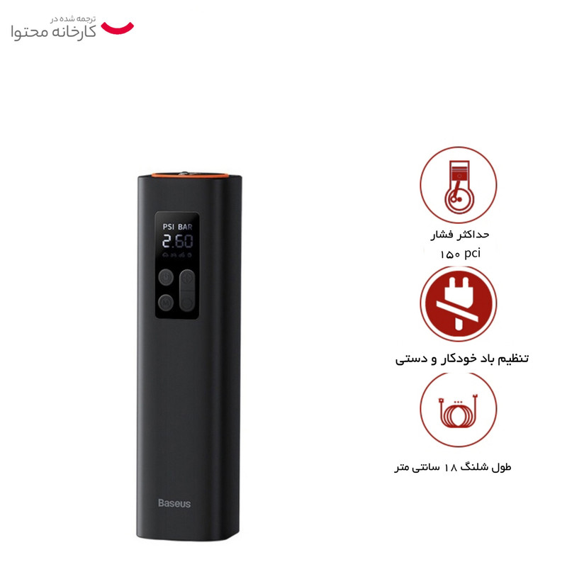 جنس: ABS و پلیکربنات نسوز / طول کابل: 3 متر / دارای چراغ قوه / تنظیم باد خودکار و دستی / امکان کار کرد مداوم به مدت 20 دقیقه | مجهزبه موتور فلزی با آهن رباهای دائمی
