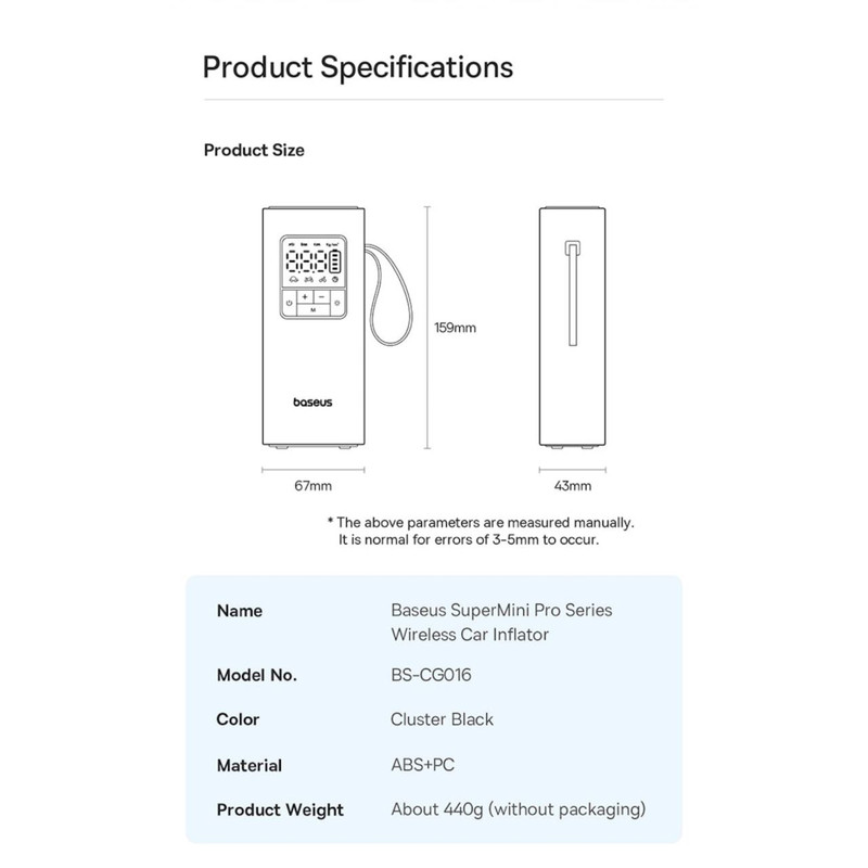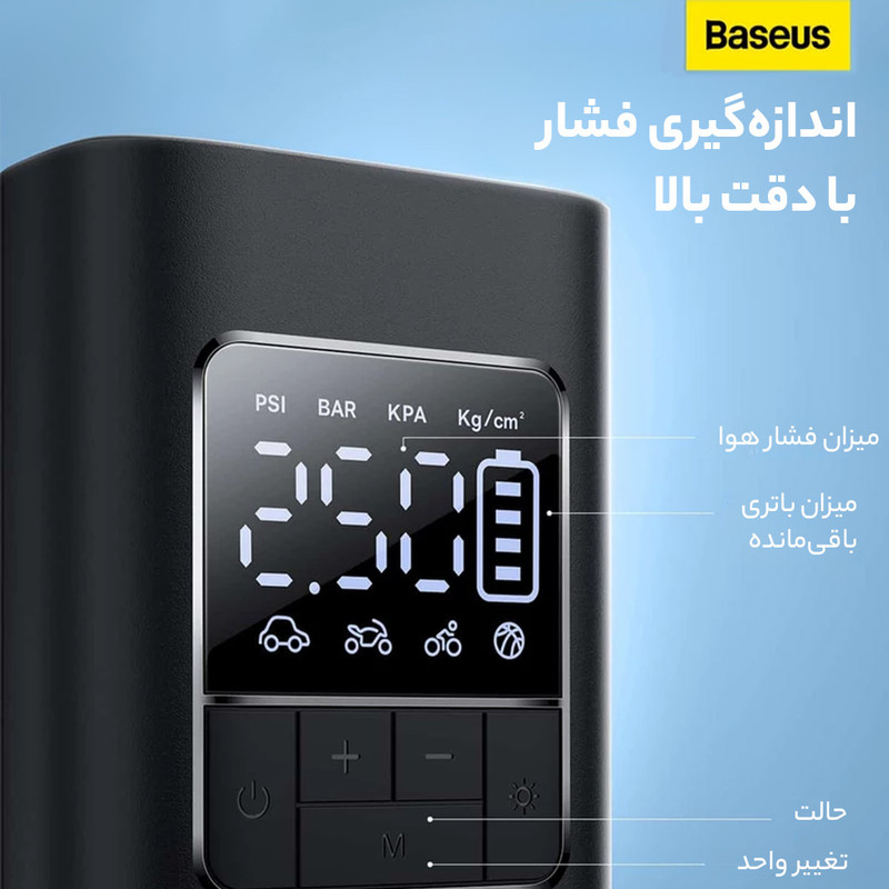 جنس ABS+PC / زمان باد کردن 6-8 دقیقه (لاستیک R175) / موتور تک سیلندر 17 میلیمتری / دارای چراغ LED قابل تنظیم در 3 حالت / صفحه نمایش دیجیتالی