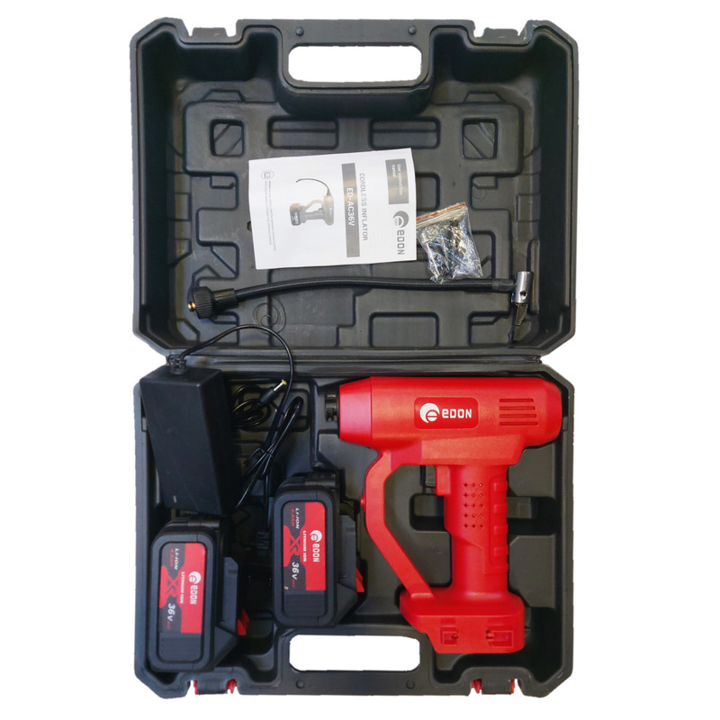 2 عدد باتری ۱۰ سلولی لیتیوم یونی کیف حمل ۳ عدد نازل مخصوص باد ۱ عدد شلنگ باد آداپتور شارژ