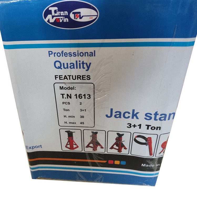 خرک خودرو تیران نوین TIRAN NOVIN -حداکثر ظرفیت خرکها 4 تن می باشد - مناسب برای خودرو های تا 4 تن وزن - اختلاف ارتفاع حالت جمع شده و بازشده (ارتفاع کاربردی خرک) 140 میلیمتر - دارای ضامن اطمینان -جنس به کار رفته از فولاد سخت - استحکام بالا در زیر فشار