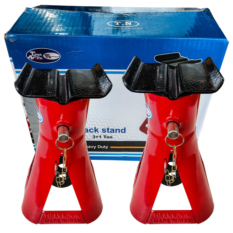 خرک خودرو تیران نوین TIRAN NOVIN -حداکثر ظرفیت خرکها 4 تن می باشد - مناسب برای خودرو های تا 4 تن وزن - اختلاف ارتفاع حالت جمع شده و بازشده (ارتفاع کاربردی خرک) 140 میلیمتر - دارای ضامن اطمینان -جنس به کار رفته از فولاد سخت - استحکام بالا در زیر فشار