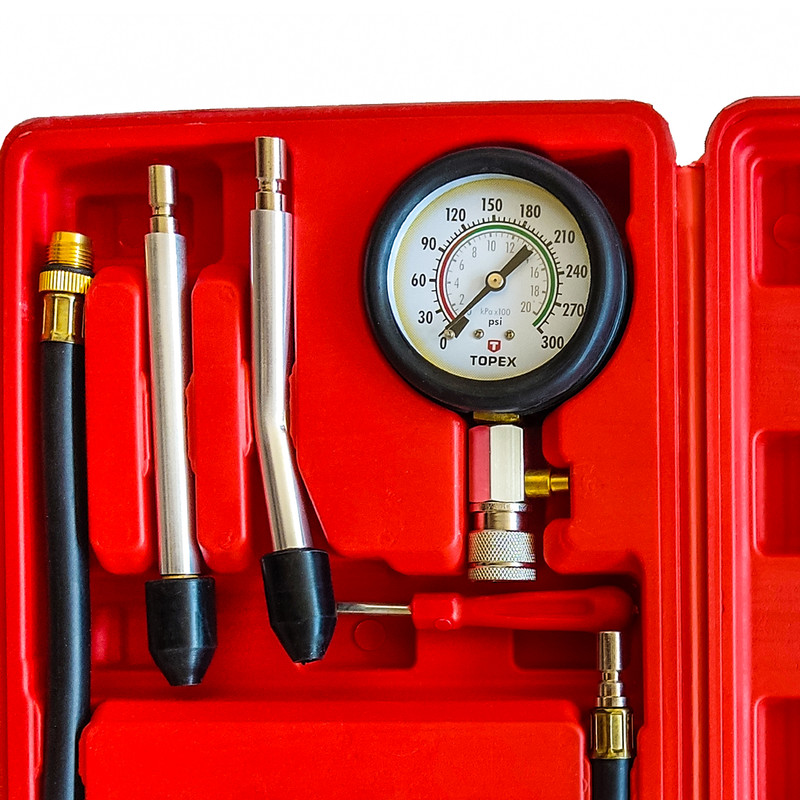 جهت سنجش عملکرد بخشی از موتور خودرو از دستگاهی به نام کمپرس سنج موتور استفاده می شود که از جمله تجهیزات گاراژی به شمار می رود. با این وسیله کاربردی می توانید به بررسی وضعیت آب بندی سیلندرها و رینگ ها و همچنین حرکت پیستون ها، داخل و خارج شدن دود از مسیر سوپاپ ها و نیز وضعیت نصب واشر سرسیلندر و تمام مواردی که در نهایت منجر به احتراق صحیح گردد، بپردازید. در واقع هر گونه ایرادی در این قسمت ها را به راحتی می توانید تشخیص دهید و به رفع مشکل به وجود آمده اقدام نمایید. هدف از خرید و استفاده از این وسیله، کاهش هزینه های تعمیرات جدی در قسمت موتور می باشد.