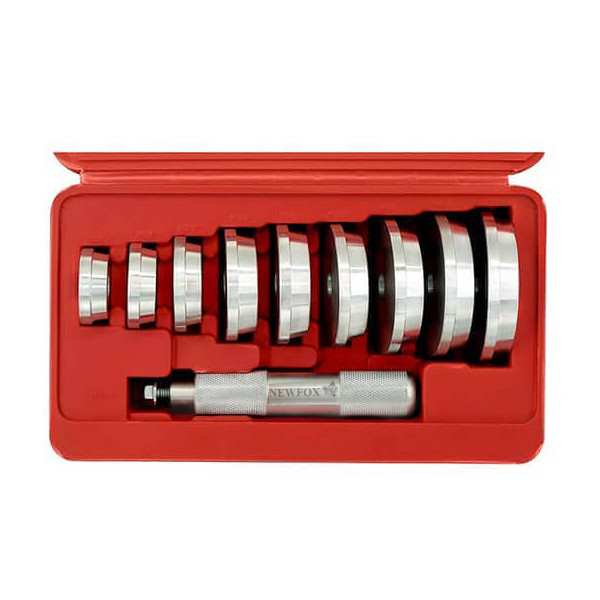 شامل 9 عدد ابزار با سایزهای 40 تا 80 میلیمتر و یک دسته با ابعاد 25*140 میلیمتر - دارای جعبه نگهدارنده پلاستیکی - مناسب برای درزگیری و جلوگیری از نشت سیالات در پمپ های هیدرولیک - مناسب برای استفاده در کلیه خودروها - ساخت چین به سفارش برند نیوفاکس
