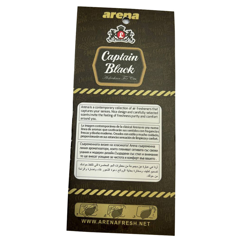 خوشبوکننده آرنا با بوی کاپیتان بلک مناسب برای خودرو و خانه می باشد با بوی مطبوع این خوشبو می توانید خودروی خود را خوشبو و معطر کنید این محصول به مدت 2 ماه ماندگاری دارد