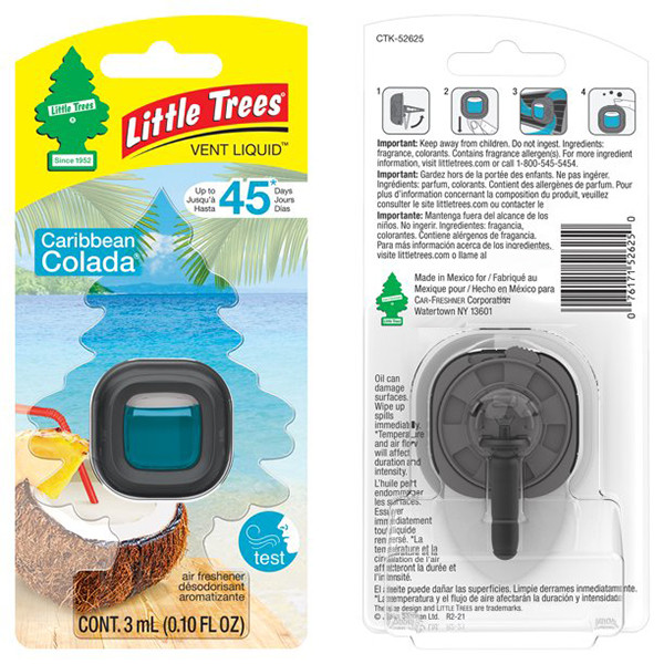 با خوشبو کننده های معروف مایع لیتل تریس زندگی خود را تازه و این حس را با همراهان خود به اشتراک بگذارید. رایحه Caribbean Colada، تجربه فرار به یک جزیره گرمسیری با ترکیبی از رایحه آناناس آبدار و نارگیل شیرین می باشد و همانند همه رایحه های ما ، بسیار با کیفیت ، قوی و ماندگار است. این خوشبوکننده مایع با پخش بوی مناسب می تواند فضای داخل خودرو را همیشه خوشبو نگه دارد وعلاوه بر اینکه قابلیت تنظیم شدن خروجی بو را توسط دکمه پشت خوشبوکننده فراهم نموده می توان مقدار مانده آن را مشاهده نمود، یکی از ویژگیهای خوشبوکننده ها، بوی خوب ، ماندگاری و نحوه استفاده از آنها می باشند. در حالی که اولین محصولات ما با عطرهای رویال کاج ، اسپایس و بوکت بودند ، این محدوده گسترش یافت، عطرهای دیگری مانند Caribbean Colada ، Vanillaroma ، New Car Scent و البته Morning Fresh اضافه شدند. دامنه محصول سپس با افزودن سایر راه حل های خوشبو کننده هوا مانند Fresh Link ، Vent Wrap و Fiber Can گسترش یافت. این محصولات در عین حال که عطر عالی دارند، آن طور که مشتریان از قدیم می شناسند و دوست دارند ، به سبک انتخابی آنها ارایه شده است. جولیوس سامان مدیر کمپانی کار فرشر علاقه وافری به کیفیت محصولاتش داشت. وی اصرار داشت که روشهای دقیق آزمایش و کنترل کیفیت رعایت و به کار گرفته شود. در تولید محصولات لیتل تریس استانداردهایی از جمله رایحه ، قدرت و ماندگاری بالای محصول و مهمتر از همه نداشتن خطر و مضر نبودن مواد به کار برده شده برای انسان و طبیعت به شدت بررسی و رعایت می گردد. CAR-FRESHNER متعهد به تولید محصولات با کیفیت بالا ، با دوام و مقرون به صرفه می باشد. این محصول دارای استاندارد بین المللی IFRA می باشد. خوشبو کننده های لیتل تریس در کارخانه های Watertown ، NY و DeWitt ، IA ساخته می شوند.