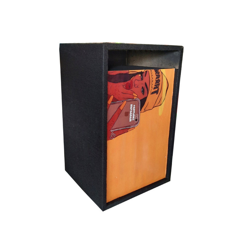 سایر توضیحات: سایز باکس 80x32x35 استیکر باکس بنر پرس شده جنس کار ترکیب ام دی اف و نئوپان کاملا مستحکم و زیبا مناسب برای ساب 12 اینچ دارای کانکتور