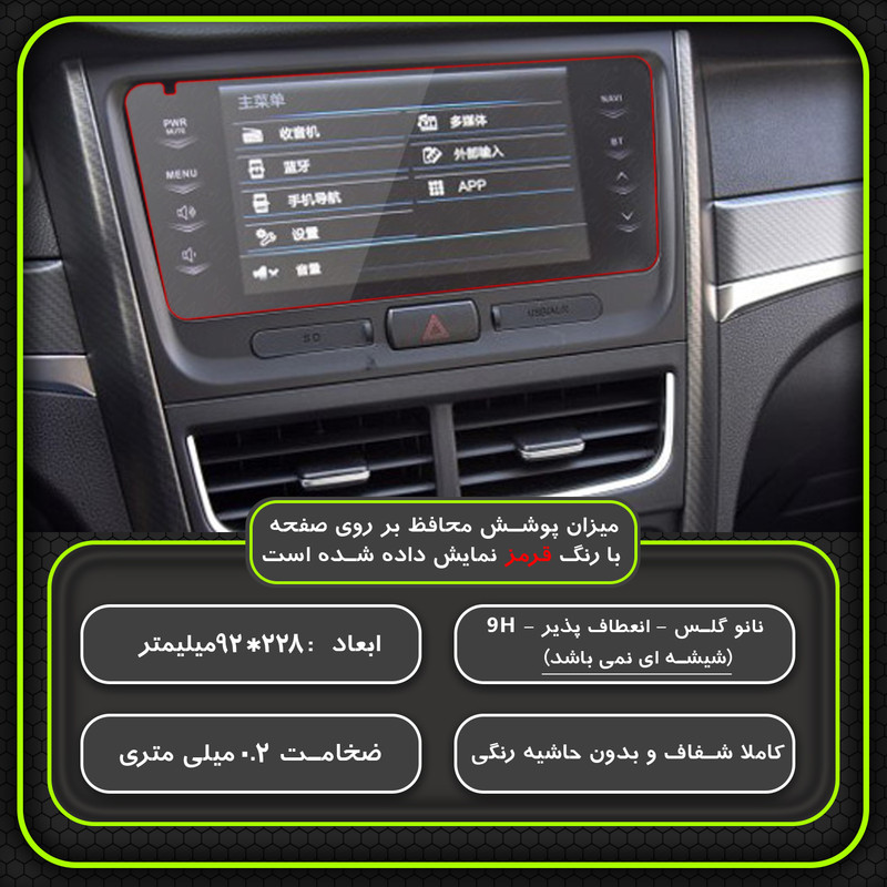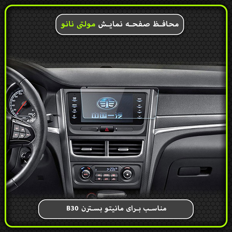 امروزه خودروها دارای دستگاه پخش هوشمند، با صفحه نمایش لمسی و ابعادی متنوع هستند و محافظت از این نوع مانیتور ها در برابر ضربات احتمالی و ایجاد خط و خش، یکی از مهمترین دغدغه های صاحبان خودرو به شمار می آید. شرکت مولتی نانو به صورت کاملا دقیق و با به روز ترین متد های اندازه گیری، محافظ هایی با ابعاد کاملا انحصاری برای نمایشگر های هوشمند خودروها طراحی ، تولید وعرضه کرده است. محافظ صفحه نمایش انعطاف پذیر نانو Multi Nano مناسب برای مالتی مدیا مانیتور فابریک خودرو Bestune B30 (ابعاد محافظ 228x92 میلیمتر)بوده و بر روی این مانیتور قابل نصب است. محافظ نمایشگر خودرو مولتی نانو، نسل جدید محافظ های صفحه نمایش، با ساختاری شفاف که از تکنولوژی نانو در ساخت آن استفاده شده و از ضخامت 0.2 میلی متری برخوردار میباشد(شیشه ای نمی باشد) و باعث مقاومت بسیار بیشتر در برابر ضربه نسبت به گلس های معمولی شده است، همچنین کاملا نشکن است و در صورت برخورد ضربه نخواهد شکست، و به مرور زمان کدر نخواهد شد و لمس آن با توجه به ساختار تکنولوژی روغنی بسیار آسان و روان است. توجه داشته باشید که این محصول دارای برچسب اول (قبل از نصب) و برچسب دوم (بعد از نصب) می باشد و داخل بسته بندی محصول برای سهولت در نصب، لوازم کامل به همراه آموزش نصب نیز وجود دارد.xxxشما میتوانید ویدئو آموزش نصب و تست مقاومت محافظ بر روی مانیتور را در آپارات و شبکه های مجازی مشاهده کنید.xxx