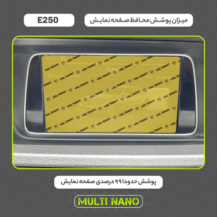 امروزه خودروها دارای دستگاه پخش هوشمند، با صفحه نمایش لمسی و ابعادی متنوع هستند و محافظت از این نوع مانیتور ها در برابر ضربات احتمالی و ایجاد خط و خش، یکی از مهمترین دغدغه های صاحبان خودرو به شمار می آید. شرکت مولتی نانو به صورت کاملا دقیق و با به روز ترین متد های اندازه گیری، محافظ هایی با ابعاد کاملا انحصاری برای نمایشگر های هوشمند خودروها طراحی ، تولید وعرضه کرده است. محافظ صفحه نمایش انعطاف پذیر نانو Multi Nano مناسب برای مانیتور خودرو (مرسدس بنز E250 2014) بوده و روی تمامی مانیتورهای این خودرو از جمله مانیتورهای رایان فن کاو اندیش، کروز و سیمیا الکترونیک قابل نصب است. محافظ نمایشگر مولتی نانو، نسل جدید محافظ های صفحه نمایش، با ساختاری شفاف که از تکنولوژی نانو در ساخت آن استفاده شده و از ضخامت 0.2 میلی متری برخوردار میباشد(شیشه ای نمی باشد) و باعث مقاومت بسیار بیشتر در برابر ضربه نسبت به گلس های معمولی شده است، همچنین کاملا نشکن است و در صورت برخورد ضربه نخواهد شکست، و به مرور زمان کدر نخواهد شد و لمس آن با توجه به ساختار تکنولوژی روغنی بسیار آسان و روان است. توجه داشته باشید که این محصول دارای برچسب اول (قبل از نصب) و برچسب دوم (بعد از نصب) می باشد و داخل بسته بندی محصول برای سهولت در نصب، لوازم کامل به همراه آموزش نصب نیز وجود دارد.