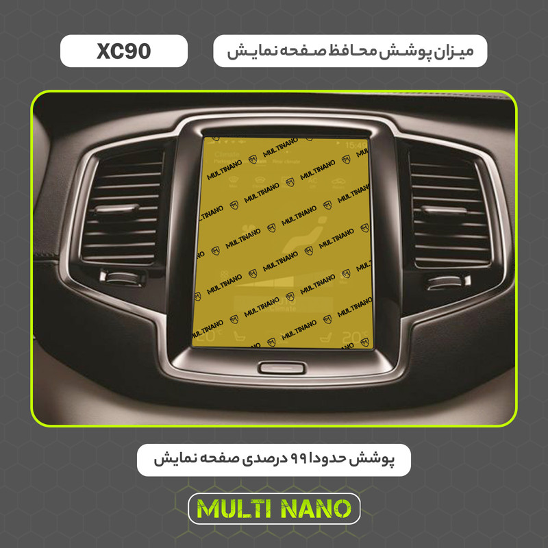 امروزه خودروها دارای دستگاه پخش هوشمند، با صفحه نمایش لمسی و ابعادی متنوع هستند و محافظت از این نوع مانیتور ها در برابر ضربات احتمالی و ایجاد خط و خش، یکی از مهمترین دغدغه های صاحبان خودرو به شمار می آید. شرکت مولتی نانو به صورت کاملا دقیق و با به روز ترین متد های اندازه گیری، محافظ هایی با ابعاد کاملا انحصاری برای نمایشگر های هوشمند خودروها طراحی ، تولید وعرضه کرده است. محافظ صفحه نمایش انعطاف پذیر نانو Multi Nano مناسب برای مانیتور خودرو (تویوتا XC90 2017) بوده و روی تمامی مانیتورهای این خودرو از جمله مانیتورهای رایان فن کاو اندیش، کروز و سیمیا الکترونیک قابل نصب است. محافظ نمایشگر مولتی نانو، نسل جدید محافظ های صفحه نمایش، با ساختاری شفاف که از تکنولوژی نانو در ساخت آن استفاده شده و از ضخامت 0.2 میلی متری برخوردار میباشد(شیشه ای نمی باشد) و باعث مقاومت بسیار بیشتر در برابر ضربه نسبت به گلس های معمولی شده است، همچنین کاملا نشکن است و در صورت برخورد ضربه نخواهد شکست، و به مرور زمان کدر نخواهد شد و لمس آن با توجه به ساختار تکنولوژی روغنی بسیار آسان و روان است. توجه داشته باشید که این محصول دارای برچسب اول (قبل از نصب) و برچسب دوم (بعد از نصب) می باشد و داخل بسته بندی محصول برای سهولت در نصب، لوازم کامل به همراه آموزش نصب نیز وجود دارد.