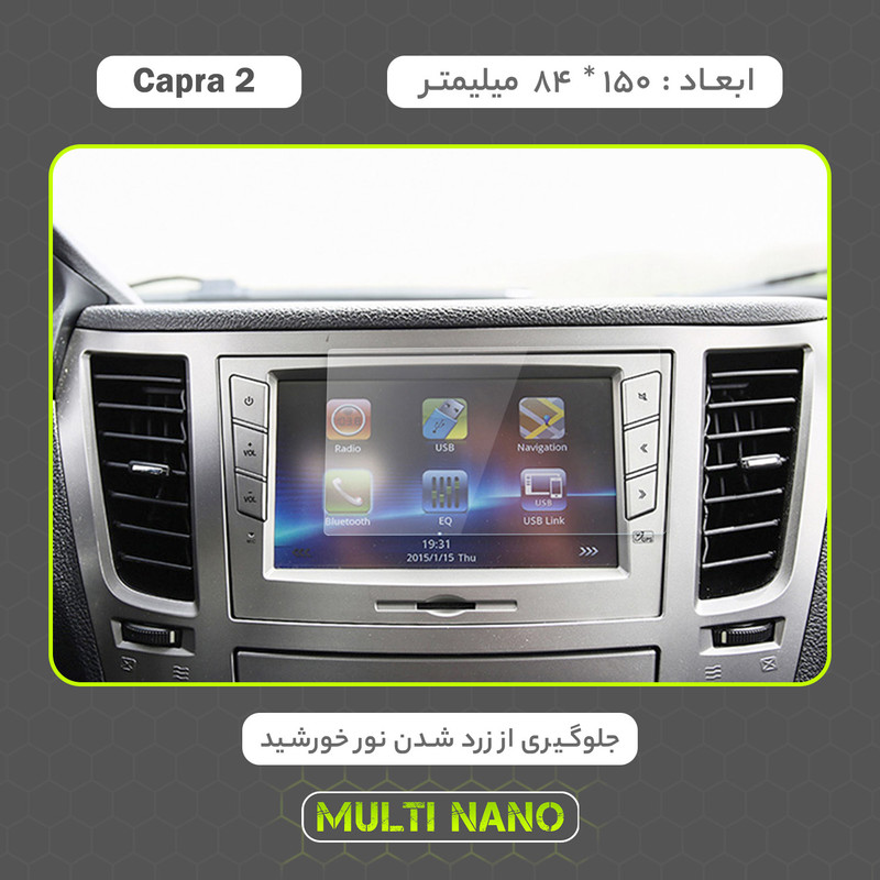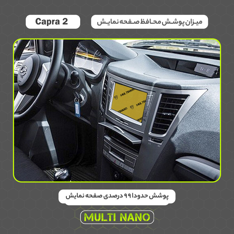 امروزه خودروها دارای دستگاه پخش هوشمند، با صفحه نمایش لمسی و ابعادی متنوع هستند و محافظت از این نوع مانیتور ها در برابر ضربات احتمالی و ایجاد خط و خش، یکی از مهمترین دغدغه های صاحبان خودرو به شمار می آید. شرکت مولتی نانو به صورت کاملا دقیق و با به روز ترین متد های اندازه گیری، محافظ هایی با ابعاد کاملا انحصاری برای نمایشگر های هوشمند خودروها طراحی ، تولید وعرضه کرده است. محافظ صفحه نمایش انعطاف پذیر نانو Multi Nano مناسب برای مانیتور خودرو (بهمن کاپرا 2) بوده و روی تمامی مانیتورهای این خودرو از جمله مانیتورهای رایان فن کاو اندیش، کروز و سیمیا الکترونیک قابل نصب است. محافظ نمایشگر مولتی نانو، نسل جدید محافظ های صفحه نمایش، با ساختاری شفاف که از تکنولوژی نانو در ساخت آن استفاده شده و از ضخامت 0.2 میلی متری برخوردار میباشد(شیشه ای نمی باشد) و باعث مقاومت بسیار بیشتر در برابر ضربه نسبت به گلس های معمولی شده است، همچنین کاملا نشکن است و در صورت برخورد ضربه نخواهد شکست، و به مرور زمان کدر نخواهد شد و لمس آن با توجه به ساختار تکنولوژی روغنی بسیار آسان و روان است. توجه داشته باشید که این محصول دارای برچسب اول (قبل از نصب) و برچسب دوم (بعد از نصب) می باشد و داخل بسته بندی محصول برای سهولت در نصب، لوازم کامل به همراه آموزش نصب نیز وجود دارد.