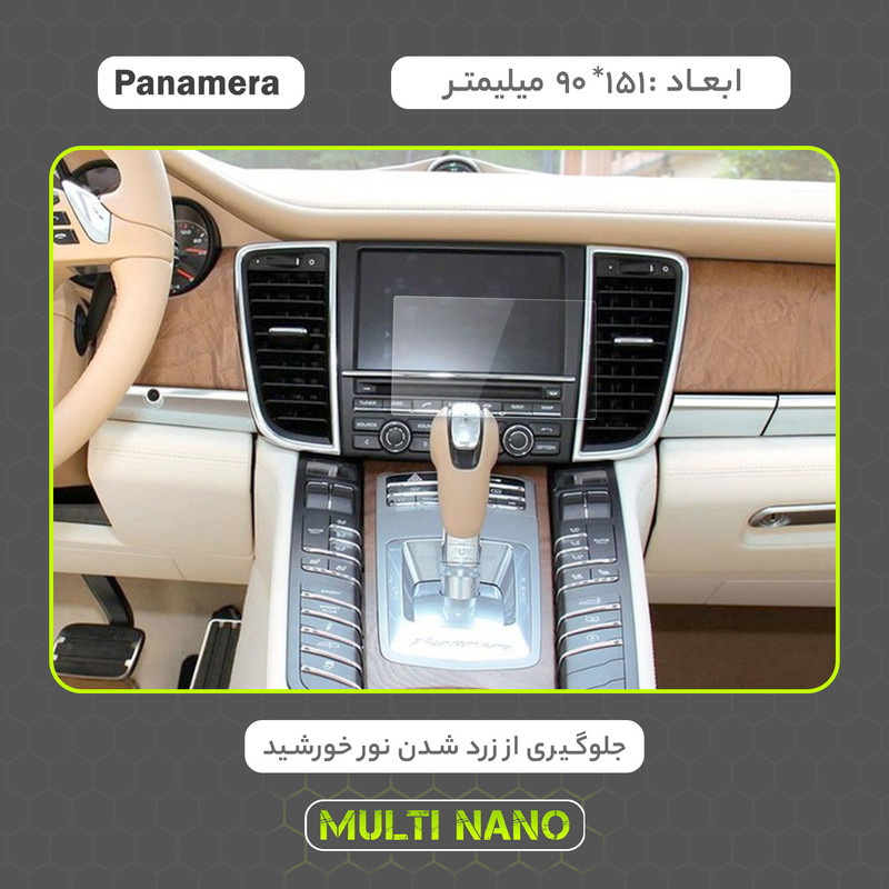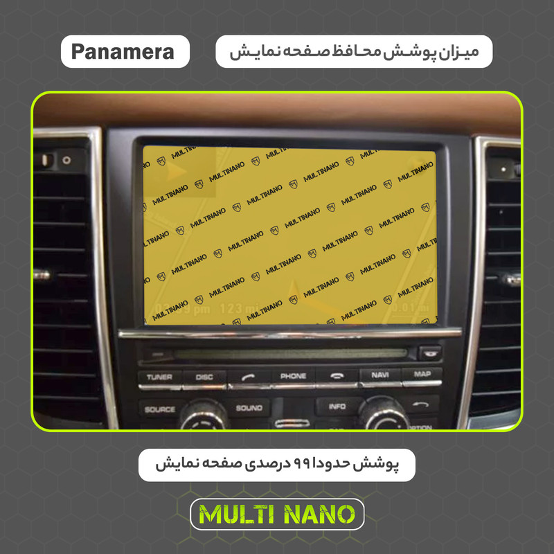 امروزه خودروها دارای دستگاه پخش هوشمند، با صفحه نمایش لمسی و ابعادی متنوع هستند و محافظت از این نوع مانیتور ها در برابر ضربات احتمالی و ایجاد خط و خش، یکی از مهمترین دغدغه های صاحبان خودرو به شمار می آید. شرکت مولتی نانو به صورت کاملا دقیق و با به روز ترین متد های اندازه گیری، محافظ هایی با ابعاد کاملا انحصاری برای نمایشگر های هوشمند خودروها طراحی ، تولید وعرضه کرده است. محافظ صفحه نمایش انعطاف پذیر نانو Multi Nano مناسب برای مانیتور خودرو (پورشه Panamera 4S 2010) بوده و روی تمامی مانیتورهای این خودرو از جمله مانیتورهای رایان فن کاو اندیش، کروز و سیمیا الکترونیک قابل نصب است. محافظ نمایشگر مولتی نانو، نسل جدید محافظ های صفحه نمایش، با ساختاری شفاف که از تکنولوژی نانو در ساخت آن استفاده شده و از ضخامت 0.2 میلی متری برخوردار میباشد(شیشه ای نمی باشد) و باعث مقاومت بسیار بیشتر در برابر ضربه نسبت به گلس های معمولی شده است، همچنین کاملا نشکن است و در صورت برخورد ضربه نخواهد شکست، و به مرور زمان کدر نخواهد شد و لمس آن با توجه به ساختار تکنولوژی روغنی بسیار آسان و روان است. توجه داشته باشید که این محصول دارای برچسب اول (قبل از نصب) و برچسب دوم (بعد از نصب) می باشد و داخل بسته بندی محصول برای سهولت در نصب، لوازم کامل به همراه آموزش نصب نیز وجود دارد.