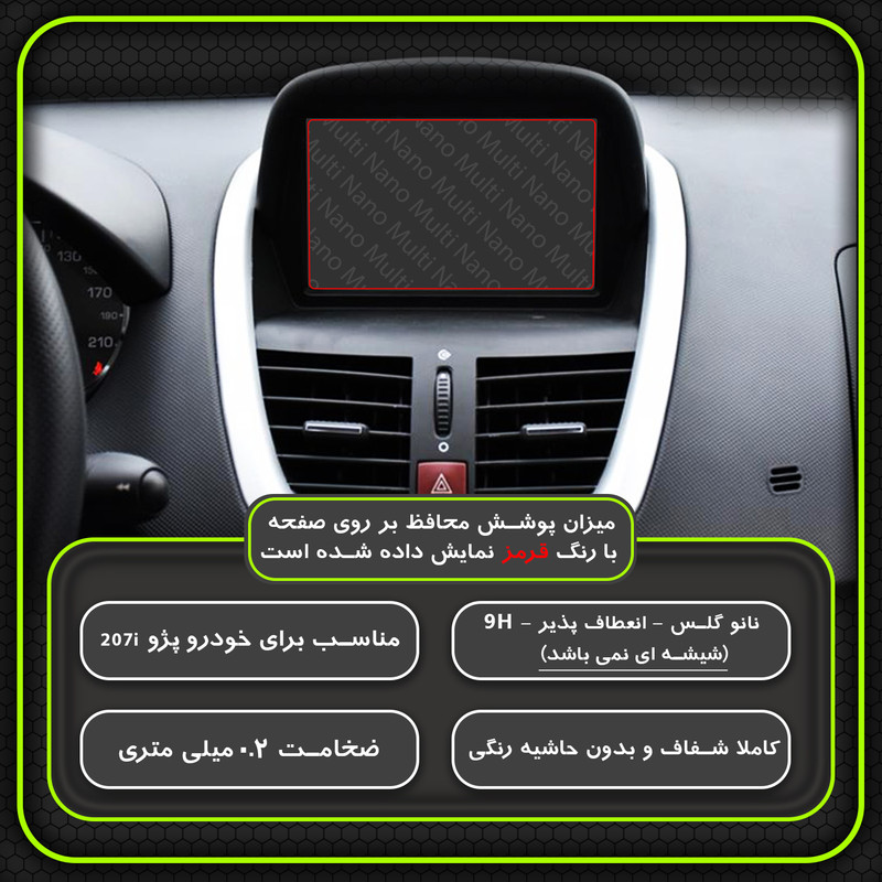 محافظ صفحه نمایش خودرو مولتی نانو مدل X-S2N مناسب برای مانیتور پژو 207i بسته دو عددی