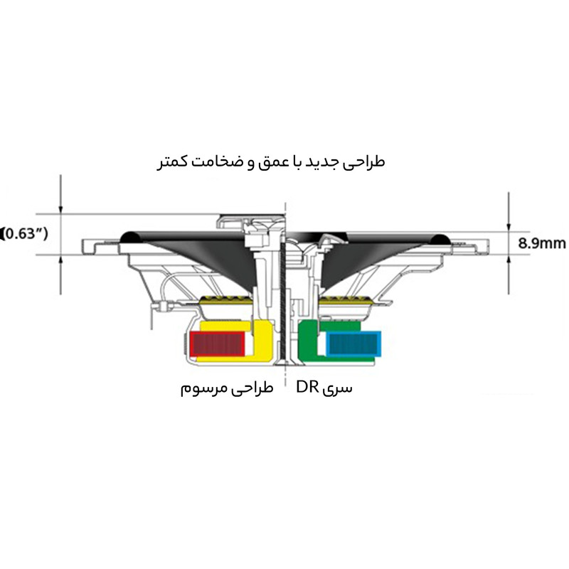 کامپوننت جی وی سی مدل DR600C با سایز مگنت 10 OZ ارتفاع و عمق نصبی معادل با 56 میلی متر دارد و به دلیل اینکه از سایز و اندازه مناسبی برخوردار است ، به راحتی داخل درب اکثر خودرو های ایرانخودرویی نصب شده و نیازی به برشکاری خودرو نیست.