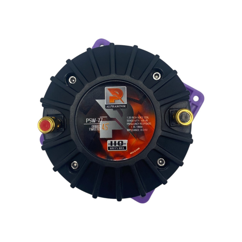 مشخصات فنی هورن تیوتر آلفاسونیک مدل 77-Alphasonik PSW: سایز این هورن 4.4 اینچ می باشد. توان مداوم (RMS) این هورن 50 وات و حداکثر قدرت آن 110 وات می باشد.