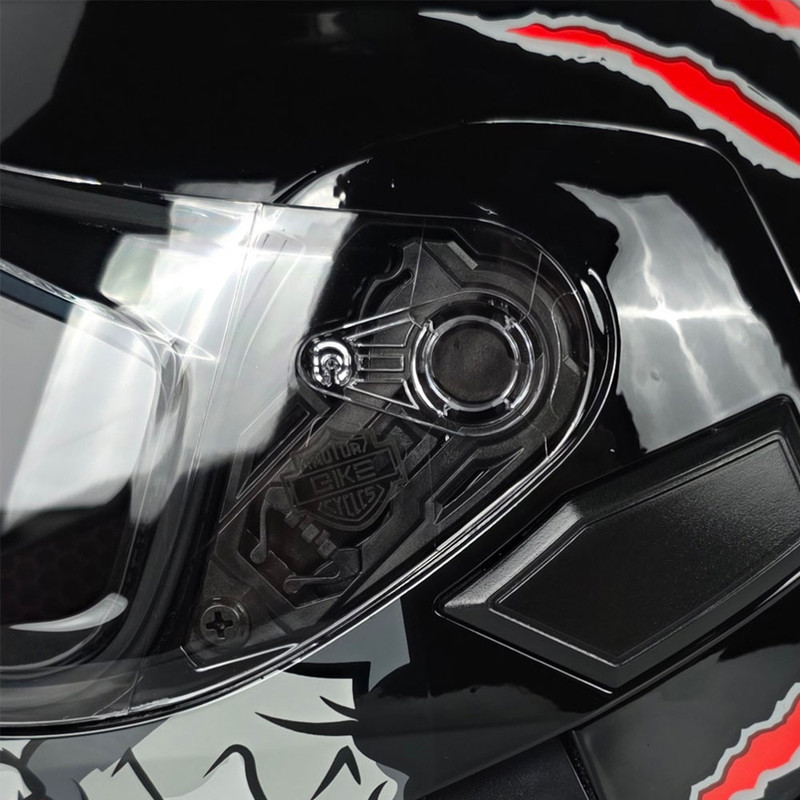 دارای قفل ویزور دارای عینک uv جیوه ای پد مولتی فوم قابل شست و شو قفل فک دارای قفل های فلز استاندارد : DOT FMVSS 218
