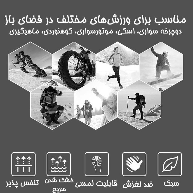 نوع دستکش موتورسیکلت: بدون قابلیت اتصال به دستهی موتور