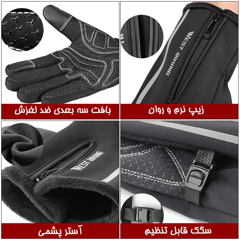 نوع دستکش موتورسیکلت: بدون قابلیت اتصال به دستهی موتور