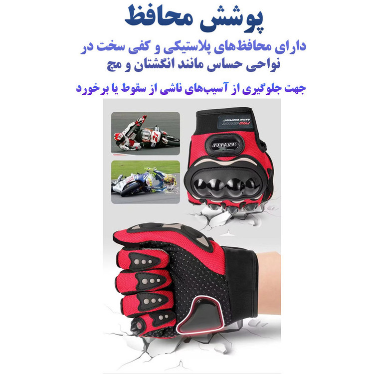 نوع دستکش موتورسیکلت: بدون قابلیت اتصال به دستهی موتور