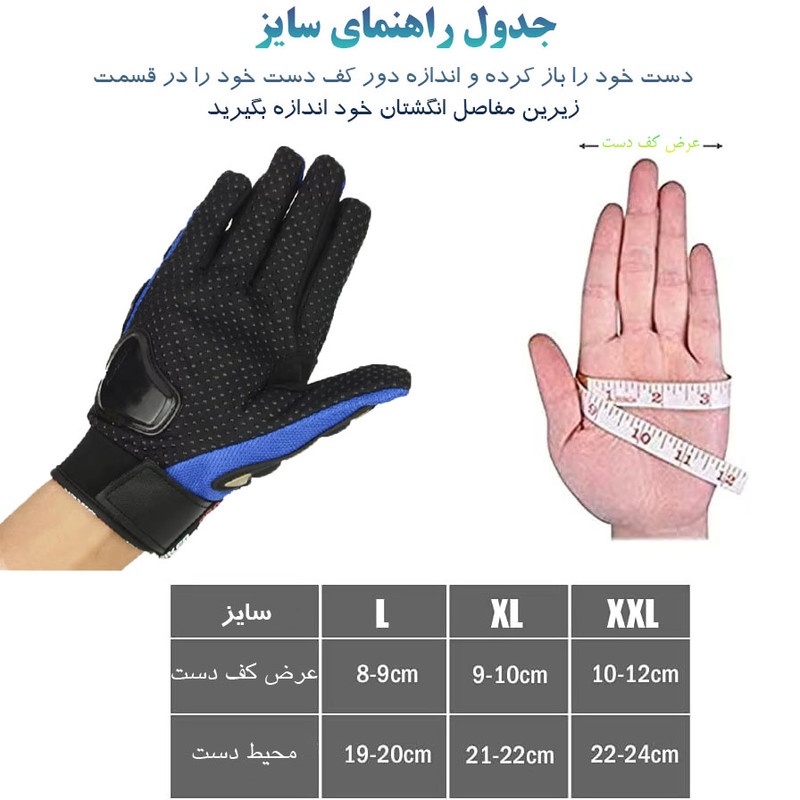 نوع دستکش موتورسیکلت: بدون قابلیت اتصال به دستهی موتور