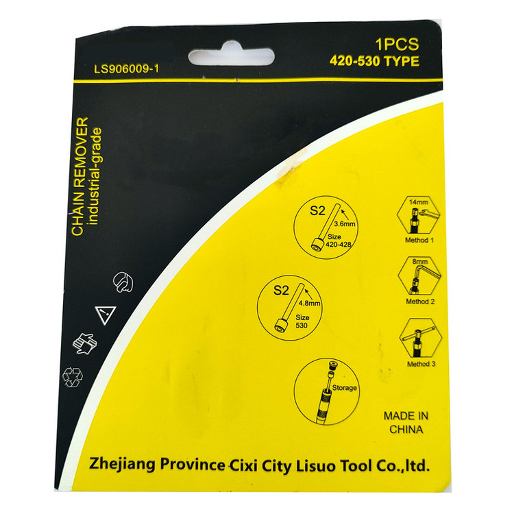 مناسب تمامی موتور سیکلت ها از سایز زنجیر 420 تا 530 دارای 2 سوزن مختلف برای سایز های مختلف زنجیر برای کج نشدن و نشکستن پین یا سوزن لطفا از هر 3 قسمت آچار استفاده شود و پین یا سوزن کوتاه , در فشار آچار استفاده شود