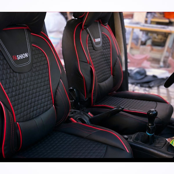 یک دست کامل روکش صندلی خودرو تمام چرم مدل فشن قابل نصب برای خودرو شاهین دوخته شده از چرم درجه یک A باتن خوری فیت و عالی قسمتهای طبی روکش از الیاف واقعی پر شده است