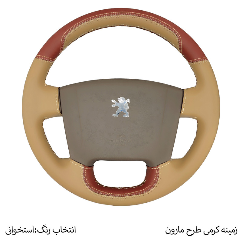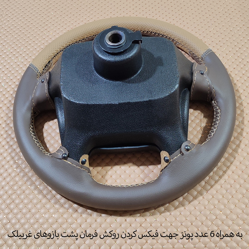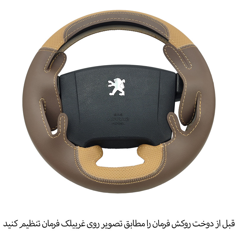 سایر توضیحات: مناسب برای فرمان پژو SLX جنس چرم درجه یک ضد خش ضخامت دو میل دوخت بسیار دقیق مقاوم در برابر تابش خورشید به همراه دو عدد نخ 3 متری شمعی ، ۶ عدد پونز، سوزن و قلاب پشت پارچه جودون پرس شد