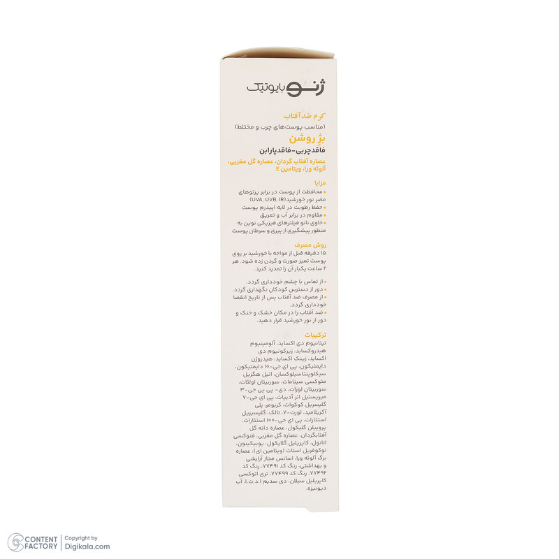 کرم ضدآفتاب رنگی ژنوبایوتیک SPF 50 مدل SUNO محافظ UVA ،UVB، مناسب پوستهای چرب، حجم 50 میلیلیتر