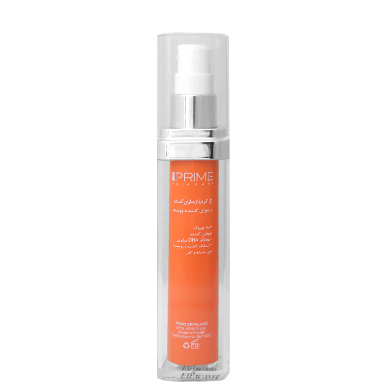 ژل کرم بازسازی و جوان کننده پوست پریم محصولی نوین و چند منظوره حاوی آسکوربیک اسید خالص، با جذب پوستی سریع و فوق العاده و عصاره طبیعی آلوی کاکادو (مهمترین منبع ویتامین C در طبیعت) می باشد که ضمن دارا بودن خاصیت مهار اثرات مخرب آلودگی هوا، با مکانیسمهای مختلف فرآیند پیری پوست را مهار می کند و موجب روشن شدن پوست، سنتز کلاژن و جوانسازی می شود.