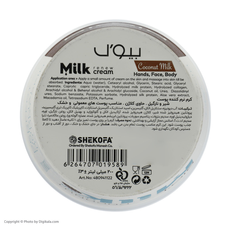 کرم نرم کننده بیول مدل شیر و نارگیل حجم 200 میلی لیتر