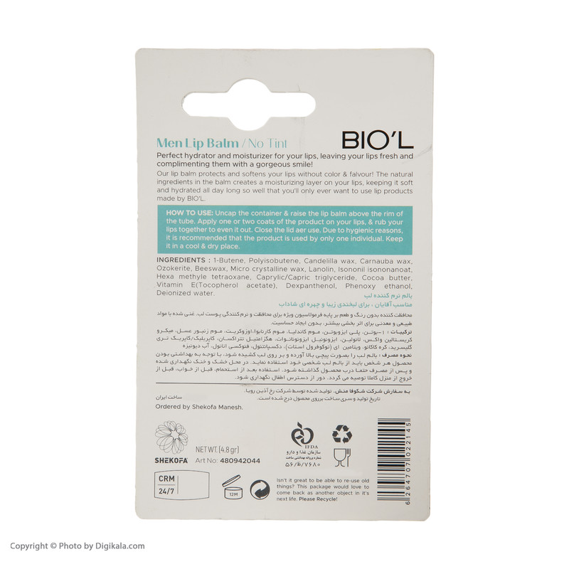این محصول میتواند لبها را به راحتی نرم و مرطوب نگه دارد بالم لب مردانهی بیول (Men Care) رنگ و طعم ندارد و به تاثیرگذاری فوق العادهاش در درمان خشکی لب شناخته شده است.