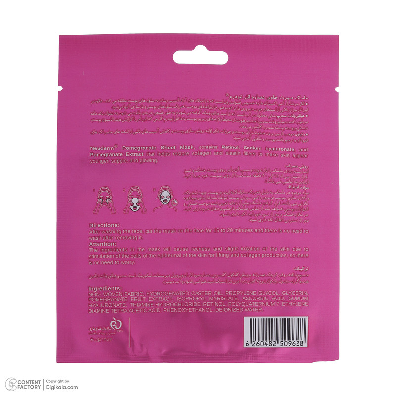 ماسک صورت انار نئودرم با بازسازی سلولهای آسیبدیده صورت، خاصیت ارتجاعی پوست را افزایش داده و باعث سفتی و استحکام پوست میشود که همین امر در جوانسازی و شادابی پوست تاثیر شگفتانگیزی دارد. در ادامه برخی از ترکیبات این ماسک را بررسی میکنیم: