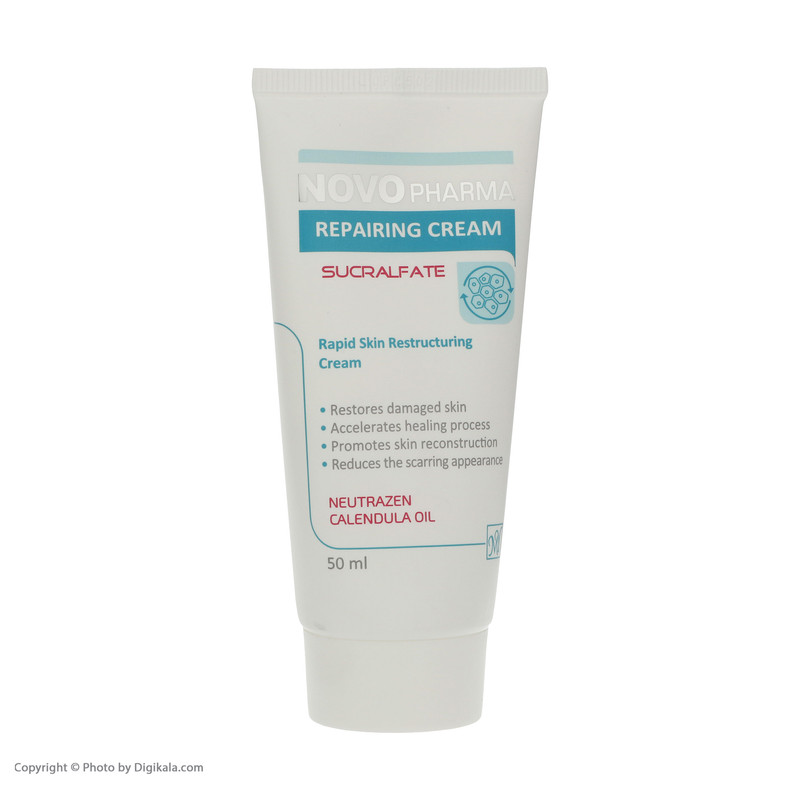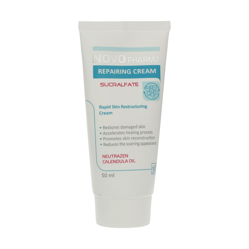 کرم ترمیم کننده پوست نووفارما یک کرم ایدهآل جهت التیام آسیبهای کوچک پوست و محصولی مؤثر در آرامش بخشیدن به التهابات و ترمیم پوست صدمه دیده است. ماده موثر سوکرالفیت موجود در این کرم، لایهای محافظ بر روی پوست آسیب دیده تشکیل میدهد و خاصیت آنتی باکتریال زینک نیز مانع رشد باکتری و ایجاد عفونت میشود. این محصول حاوی طیف گستردهای از مواد ضدالتهاب قوی همچون نوترازن، روغن کالاندولا، بیزابولول و نیاسینامید است تا به سرعت، قرمزی پوست ملتهب را برطرف نماید. سوکرالفیت از ترکیبات این محصول ترمیم کننده قوی پوست، آنتی باکتریال و تشکیل دهنده لایهای محافظ بر روی پوست آسیب دیده است.زینک اکساید موجود در کرم نووفارما خاصیت آنتی باکتریال دارد.