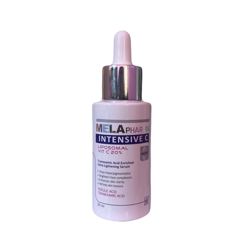 سرم روشن کننده ویتامین C ملافارما حاوی درصد بالایی از ویتامین C لیپوزومال و آربوتین است، که با همکاری ترانگزامیک اسید، به از بین رفتن لکهای تیره پوست کمک مینماید و نشانههای پیری پوست مانند چین و چروکها را برطرف میسازد. اسید فرولیک یک آنتی اکسیدان قوی است که در کنار سایر آنتی اکسیدانها همچون ویتامین C، با اثرات مضر رادیکالهای آزاد مبارزه نموده و پوست را تقویت مینماید. بافت سبک این سرم باعث شده است افراد با پوست چرب بتوانند بدون نگرانی از آن استفاده نمایند. ترکیبات ضد التهابی همچون نوترازن و نیاسینامید نیز، التهابات و قرمزی پوستهای حساس را برطرف مینمایند.