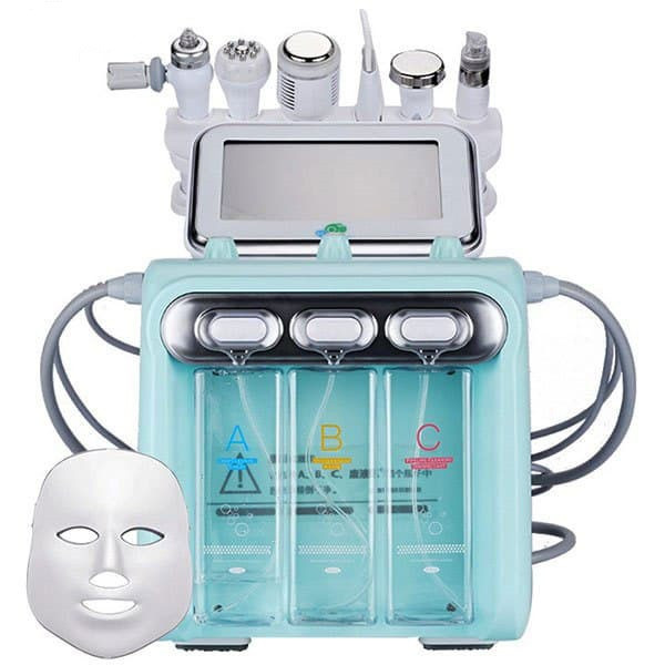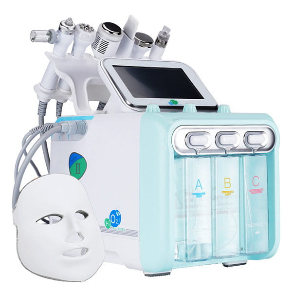 دستگاه جوان ساز هیدروفیشیال نیوفیس 7 کاره (Hydrofacial NewFace 7in1) همانند دستگاه هیدروفیشیال نیوفیس 6 کاره ، یکی از پرکاربرد ترین دستگاه های جوانسازی صورت به شمار می رود. این دستگاه علاوه بر تمام قابلیت ها و ویژگی های مدل قبلی خود، دارای ماسک ال ای دی نیز می باشد. ماسک ال ای دی که در ادامه با آن آشنا خواهیم شد، دارای 7 عملکرد مختلف است که به شادابی و زیباسازی صورت کمک می کند. علاوه بر آن، بوسیله هندپیس های دیگر دستگاه، می توان به لیفت و کشیدن پوست ، آبرسانی، کلاژنسازی و … پرداخت. معمولا دستگاه هیدروفیشیال 7 کاره نیو فیس در کلینیک ها و سالن های زیبایی مورد استفاده قرار می گیرد. تجهیزات زیبایی هیدروفیشیال نوعی نوآوری در زمینه پزشکی و زیبایی است که انواع روش های تمیز کردن، لایه برداری، استخراج و آبرسان و لیفتینگ را با هم ترکیب کرده است. غیرتهاجمی بودن و کاربری آسان دستگاه هیدروفیشیال نیوفیس 7 کاره سبب شده تا عمل چوانسازی صورت با نرمی و لطافت بسیار بالایی انجام شود. به همین دلیل، این دستگاه چند کاره، جایگزین درمان های سنتی در سالن های زیبایی شده است. در طول عمل بوسیله این محصول، از اپلیکاتورهای ویژه ای استفاده می شود که برای هر مرحله جوانسازی به طور خاص اختصاص داده شده و برای هر بیمار منحصر به فرد است.دستگاه هیدروفیشیال 7 کاره نیوفیس ، دارای 6 عدد سری و 1 عدد ماسک ال ای دی می باشد. این سری ها عبارتند از چکش سرد (Cold Hammer)، پاک کننده صورت آکواپیل (Facial Cleaner Aqua Peel)، اتوی صورت (Skin Scrubber)، سری اولتراسوند (Ultrasound Head)، اسپری هیدراته پوست (Hydro Spray gun)، میکرو جریان یا آر اف مولتی پولار (BIO Microcurrent). هر یک از این هندپیس ها برای موارد خاصی کاربرد دارند. همین ویژگی محصول، یعنی جای دادن 7 کاربرد متنوع در یک دستگاه، آن را به یکی از محبوب ترین دستگاه های زیبایی در دنیا تبدیل کرده است