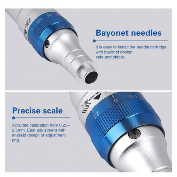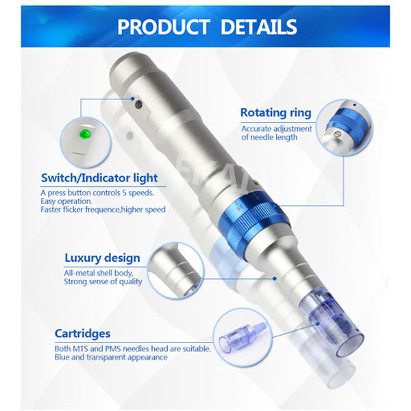 میکرونیدلینگ یکی از بهترین روش های کلاژن سازی می باشد که با توجه به هزینه بسیار کم نتایج شگفت انگیزی را در پی دارد. در این روش به وسیله دستگاه میکرونیدلینگ، منافذ و کانال های بسیار ریزی در پوست ایجاد می شود و پوست را وادار به ساختن مقادیر بالای کلاژن می کند و البته اگر نقصی مانند اسکار آکنه یا اسکار سوختگی یا ترک پوستی هم وجود داشته باشد این مشکل هم به بهترین نحو ممکن برطرف می گردد. به عبارت دیگر اساس کار به این ترتیب است که ابتدا با دستگاه سوراخ های ریزی در لایه سطحی پوست ایجاد می شود. سوزن های بسیار ظریف این دستگاه به لایه عمقیق تر پوست یا همان درم نفوذ می کنند و این کار می تواند باعث فعال شدن عمل کلاژن سازی شود. جنس بدنه دستگاه میکرونیدلینگ دکتر پن مدل A6 از تیتانیوم است که ضدخش و ضد حساسیت بوده و دارای استحکام بسیار بالایی می باشد. با استفاده غلطک چرخشی دستگاه میکرونیدلینگ دکتر پن مدل A6 می توانید سرعت را در پنج حالت متفاوت تغییر داده بنا بر نیاز خود یکی از این حالت هار انتخاب کنید. تنظیم سرعت این دستگاه میکرونیدلینگ بین ۸۰۰۰ تا ۱۸۰۰۰ ضربه در دقیقه متغییر است. علاوه بر این مورد شما می توانید اندازه طول سوزنهارا جهت قرار گرفتن داخل پوست تغییر دهید . این اندازه بین ۰٫۲۵ تا ۲٫۵ میلمیتر قابل تنظیم است . با وجود اینکه این دستگاه قابلیت کارکرد با برق مستقیم را دارا می باشد ، اما از اقلام همراه دستگاه میکرونیدلینگ دکتر پن مدل A6 می توان به دو عدد باتری اضافه همراه آن اشاره کرد. وجود باتری اضافه همراه محصول ، این دستگاه میکرونیدلینگ را به محصولی ویژه برای کلینیکها تبدیل کرده است. چراکه با وجود باتری قابل شارژ ، دیگر نگران تاخیر در انجام عملیات میکرونیدلینگ روی مشتریان خود نخواهید بود.