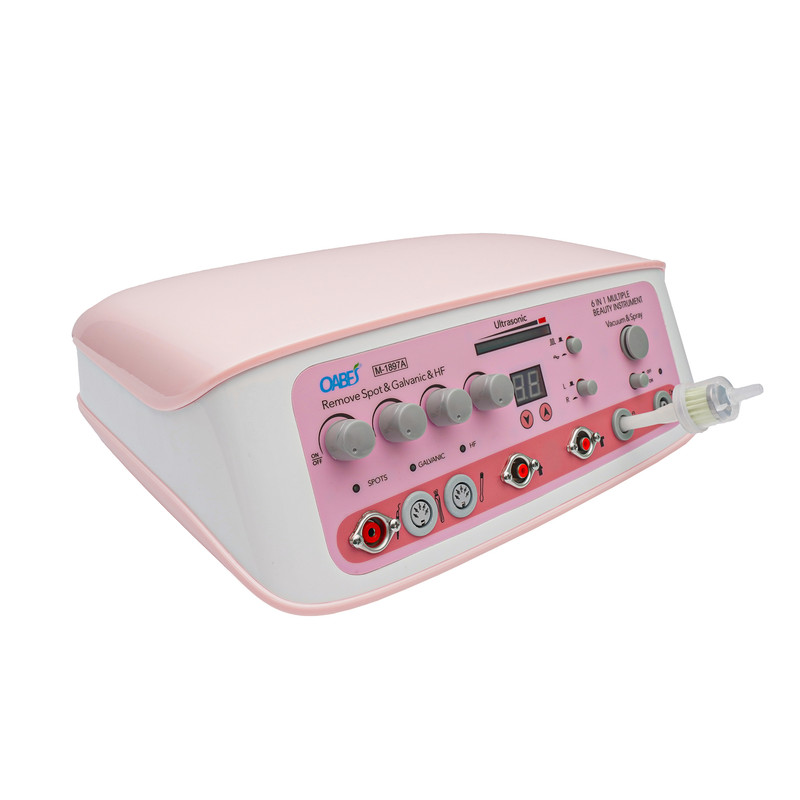 دستگاه هیدرودرمی گالوانیزه برند اوآبس OABES مدل M-1897A با داشتن 6 سری مخصوص برای پاکسازی و آبرسانی پوست، که هرکدام وظیفه ی خاصی را بر عهده دارند، گزینه ی بسیار عالی برای استفاده ی آرایشگران، سالن داران و متخصصان پوست است که علاوه بر کارایی های متعدد، کار با این دستگاه پاکسازی و آبرسانی نیز بسیار آسان است. از دستگاه هیدرودرمی گالوانیزه ی دیجیتالی، برای جوان سازی و پاک سازی پوست صورت و گردن به صورت رایج استفاده می شود اما به این معنا نیست که نتوان برای صاف کردن و صیقل دادن پوست سایر قسمت های بدن از این دستگاه پاک سازی بهره برد. سری های دستگاه هیدرودرمی دیجیتال گالوانیزه به نحوی طراحی شده اند که قابل استفاده برای پاک سازی پوست هر ناحیه از بدن باشند.دستگاه هیدرودرمی گالوانیزه برند اوآبس OABES شش کاره ی دیجیتالی، مورد تایید و استقبال اکثر متخصصان زیبایی است. سری های دستگاه عبارتند از: 1-سری هایفرکانسی 2-سری پلاسمایی 3-سری زیبایی یا گالوانیک 4- اولتراسونیک چشم ،صورت و بدن 6- سری اسپری پودری یا اکسیژن تراپی . سری های دستگاه هیدرودرم گالوانیزه ی دیجیتالی به راحتی قابل شستشو هستند. دستگاه هیدرودرمی گالوانیزه ی دارای صفحه ی دیجیتالی دقیق ضمن نمایش اطلاعات است.