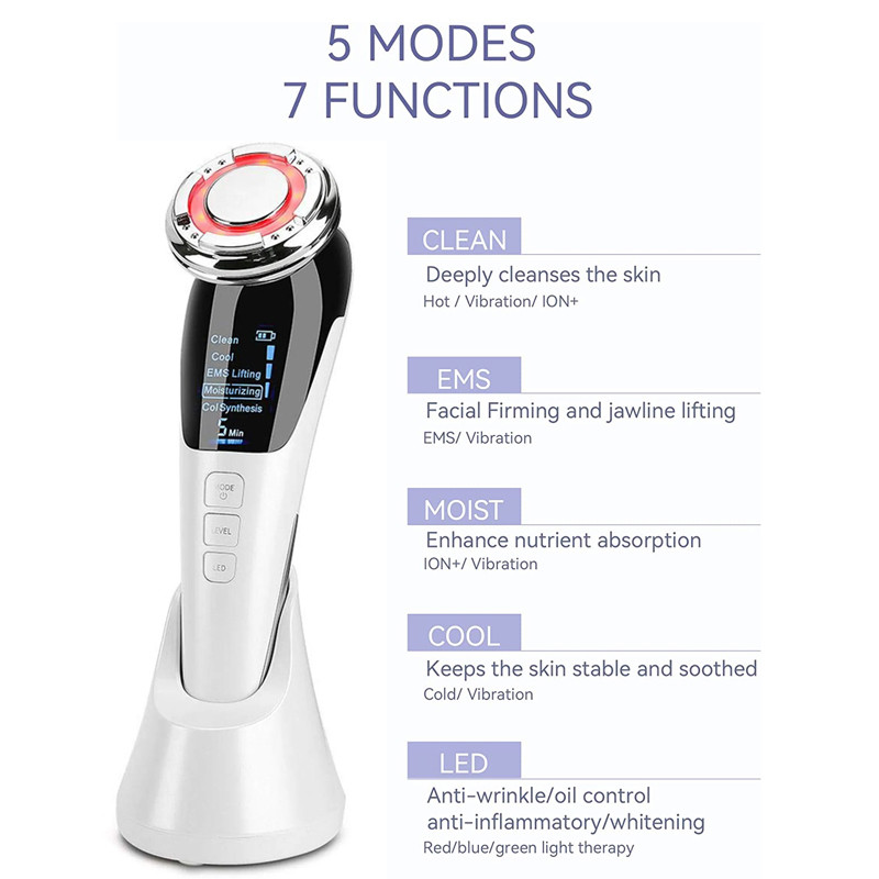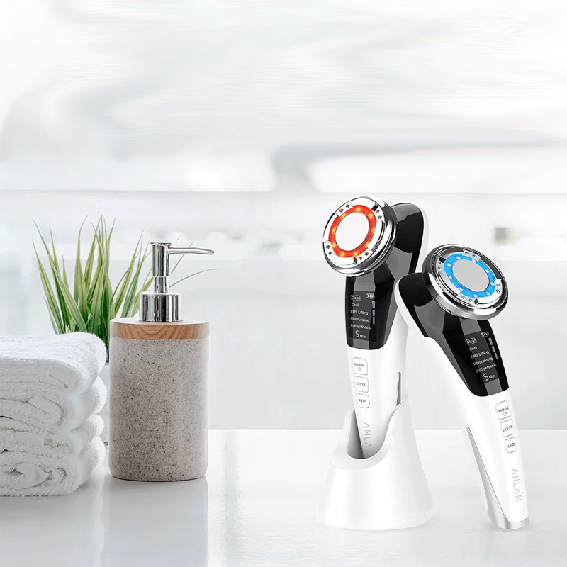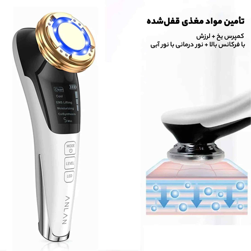 ماساژور صورت ANLAN Facial محصولی با قابلیت های فوق العاده است که علاوه بر ماساژ، رفع خستگی و پاکسازی پوست شامل قابلیت هایی چشم گیر می باشد که میتواند برای مراقبت از پوست صورت مورد استفاده قرار گیرد. از جمله قابلیت های این دستگاه میتوان به مواردی که در ادامه ذکر می شود اشاره کرد. 1- کمپرس گرم پوست با دمای 38 تا 42 درجه: این حالت می تواند گردش خون را بهبود بخشد، چین و چروک و پوست حساس را از بین ببرد شما با 3 دقیقه کمپرس گرم میتوانید گردش خون پوست خود را بهبود بخشید. 2- کمپرس سرد با دمای 6 تا 12درجه: این حالت با ایجاد حس سرما رطوبت و مواد مغذی را در پوست ماندگارتر می کند و منافذ را اصلاح می کند. شما با 2 دقیقه کمپرس سرد میتوانید به از بین بردن سریع تر آکنه و قرمزی در پوست حساس کمک کنید 3- حالت نور قرمز با طول موج 622 نانومتر: این حالت بیشتر مناسب پوست های آسیب دیده است و به کاهش و بهبود چروک های صورت و بازسازی پوست کمک میکند. 4- حالت نور آبی با طول موج 465 نانومتر: این حالت بیشتر مناسب بهبود آکنه ی پوست می باشد و به بهبود التهاب آن کمک می کند. 5- یون مثبت: یون + ، یون های منفی پوست را جذب می کند، چربی پوست، کثیفی، سموم و جوش های سرسیاه پوست را کاهش می دهد و کانال های پوست را پاکسازی می کند تا از انسداد منافذ جلوگیری کند. 6- یون منفی: یون - ، کرم یا لوسیون مد نظر شما را را تحت فشار قرار می دهد تا وارد بافت زیر جلدی پوست شود تا بخوبی جذب لایه های زیرین پوست شود که میتواند به صاف ماندن پوست شما کمک کند. 7- ماساژ ems: دراین حالت با اعمال جریان الکتریکی ضعیف سلول های عضلانی صورت را فعال می کند و متابولیسم را بهبود می بخشد و ماساژ ارتعاشی صوتی با سرعت 10000 بار در دقیقه چین و چروک و پف پوست را کاهش می دهد.