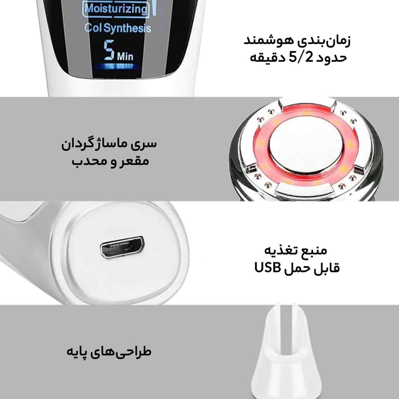 شما با استفاده از این محصول می توایند از روی ماسک های صورت، پوست خود را ماساژ دهید تا جذب مواد داخل ماسک ها را 3 برابر بیشتر کنید. شایان ذکر است هر حالت از این دستگاه دارای تایمر بوده و پس از اتمام آن زمان آن حالت غیر فعال می شود. در ضمن این محصول دارای استند شارژ بوده که شارژ کردن آن را راحت تر میکند.