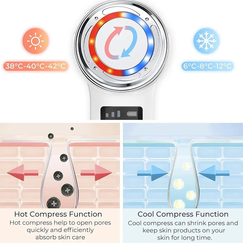 عملکرد LED این دستگاه نیز در بازسازی کلاژن و بهبود آسیبهای پوستی معجزه میکند. همچنین، با هدف قرار دادن باکتریهای مضر، آکنه را حذف کرده و اسکارها را کاهش میدهد. درمان گرمایی دستگاه با باز کردن منافذ پوست، پاکسازی عمیق را آسان کرده و گردش خون را بهبود میبخشد. در مقابل، درمان سرمایی منافذ پوست را منقبض کرده و به حفظ رطوبت و شفافیت پوست کمک مینماید.