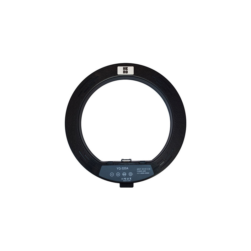 رینگ لایت مدل YQ-320A نور یکدستی را تولید میکند و برای زمانهایی که نیاز به نورپردازی کامل و بدون سایه داشته باشیم انتخاب مناسبی می باشد. رینگ لایت یک نوع وسیلهی نورپردازی به صورت دایرهای است که نور رو به صورت نرم و از تمام زوایا به سوژه میتاباند. رینگلایت برای عکاسی پرتره، آرایشگاهها و بلاگرها (در پروسه تولید محتوی) کارایی بسیاری دارد. این مدل را میتوانید در بازه دمایی 3000 و 6500 کلوین تنظیم کنید. این مدل را میتوانید روی پایه قرار داده و از آن استفاده کنید که البته بایستی پایه را به صورت مجزا تهیه فرمایید. برای این مدل ریموت تعبیه شده تا بتوانید از راه دور تنظیمات این رینگ لایت را انجام دهید. یکی دیگر از ویژگیهای این محصول قابلیت کم و زیاد کردن شدت نور است که میتوانید با توجه به شرایط مورد نیاز شدت نور رینگلایت را افزایش یا کاهش دهید.