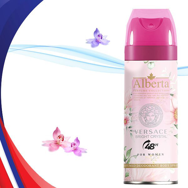 محصول فوق اسپری خوشبو کننده بدن آلبرتا 200 میل زنانه با رایحه VERSACE- BRIGHT CRYSTAL می باشد . ماندگاری این اسپری 48 ساعت میباشد و این بدان معناست که میتوان پس از گذشت یک روز عطر و رایحه آن را بر روی لباس و بدن خود احساس نمایید. این محصول با اسانس قوی بدن و فضای محیط را خوشبو میکند . این اسپری ها در تماس با سطح پوست هیچ حساسیت و عوارضی نداره. این اسپری را از فاصله 15 تا 20 سانتی متری به بدن و لباس خود و یا محل مورد نظر اسپری کنید.