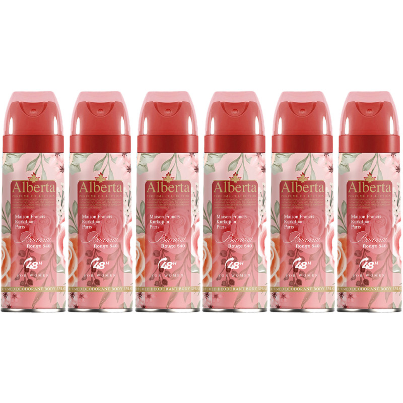 اسپری بدن زنانه آلبرتا مدل باکارات رژ حجم 200 میلی لیتر مجموعه 6 عددی