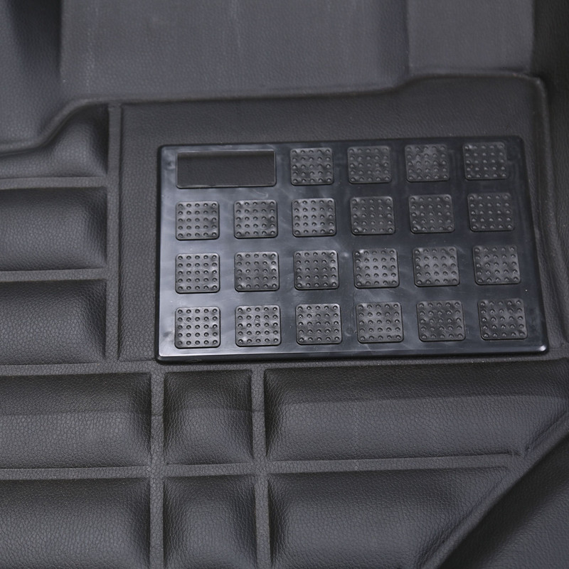 کفپوش فوق مناسب برای خودروی کوییک است. بر خلاف کفپوش های 3 بعدی موجود در بازار که قسمت کمتری از کف خودرو را پوشش می دهند در سری جدید کفپوش های 5 بعدی در اکثر مدل های خودروها لبه های کناری ارتقاء یافته اند و کناره های صندلی های جلو را تا عقب پوشش می دهند تا فضای کف خودرو کاملا پوشش داده شود و کناره ها نیز بلندتر شده تا کاملترین پوشش را نسبت به قبل داشته باشد و کلیه سطوحی که پا با آنها تماس دارد را به خوبی پوشش دهد. این کفپوش به صورت اختصاصی جهت استفاده در اتاق داخلی این خودرو طراحی شده است و دارای کیفیت طراحی و تولید بالایی می باشد که سبب می شود به خوبی در اتاق خودرو شما قرار گیرد و به دلیل دقت بالای طراحی به هیچ وجه در کف خودرو جابه جا نشود. جنس سطوح رویه این محصول از چرم ضد سایش و جنس خارجی آن از چسب پارچه ای بوده که باعث می شود کفپوش کاملا ضد آب و ضد بو باشد.استیل موجود در زیر پدال این کفپوش ضد خش بوده و دارای استقامت بالایی می باشد که در طولانی مدت مانع سوراخ شدن کفپوش می شود، همچنین در سطح داخلی این محصول شیار هایی تعبیه شده است که علاوه بر ایجاد نمایی زیبا سبب تجمع مایعات گشته که مانع لغزش پا بر روی کفپوش می شود. این محصول دارای ضخامت 10 میلی متر می باشد و در عین داشتن استحکام بسیار بالا از سبکی و انعطاف پذیری زیادی برخوردار می باشد.