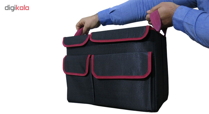 دارای 2 جیب بیرونی علاوه بر 2 محفظه ی داخلی جلوگیری از سر خوردن کیف با بکارگیری چسب و چسبیدن آن به نمد کف صندوق